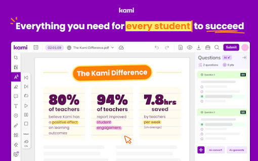 When you're on the hunt for an interactive learning platform that enhances teaching, learning, and assessment, Kami for Google Chrome™ is your ultimate solution. This powerful extension brings learning to life, offering an array of features designed to keep students engaged and streamline teaching and assessment processes for educators.